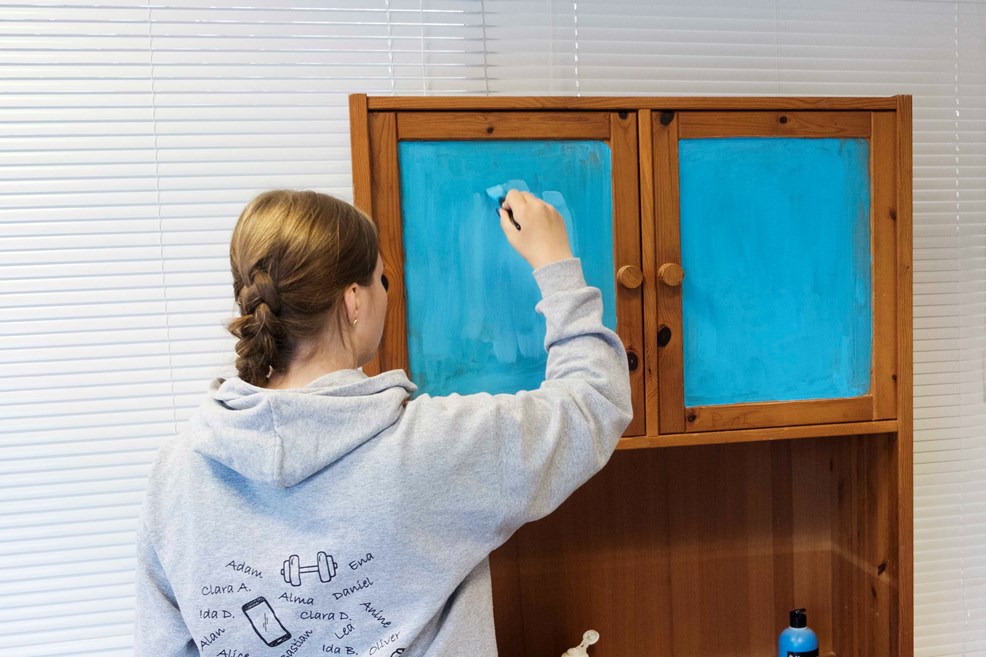 Og kaos bliver der i sandhed, da alle eleverne på 10KCD giver sig i kast med dagens projekter. Fællesrummet, klasselokaler og områderne udenfor flyder med værktøj, tekstiler, træ, men ikke mindst vrimler det med flittige elever, der forvandler skrot til nye møbler og udsmykning til skolen.