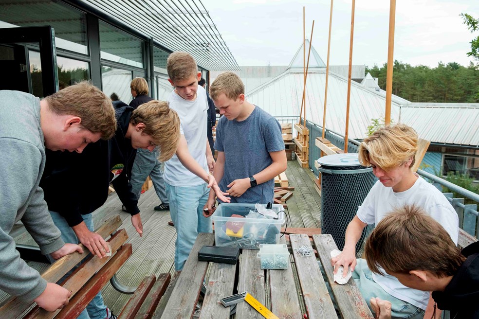- Håndværk og byggeri, Design, Idræt og Global arbejder på forskellige måder med det, og bidrager med det, som de er gode til. Udover at tænke i bæredygtige løsninger, så er det et ryste-sammen-projekt, og indretningen skal give dem noget ejerskab over skolen, siger lærer Henrik Krog.